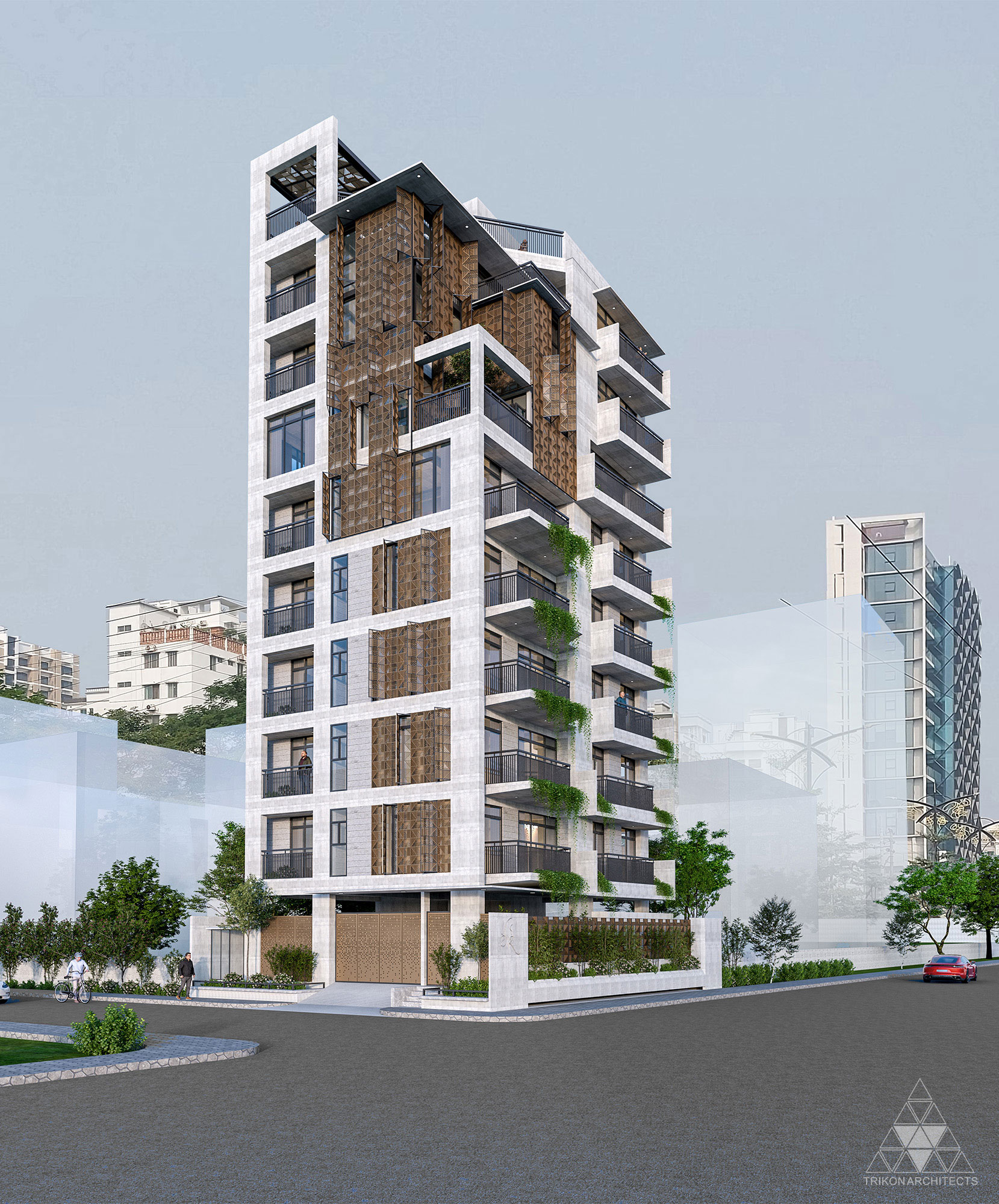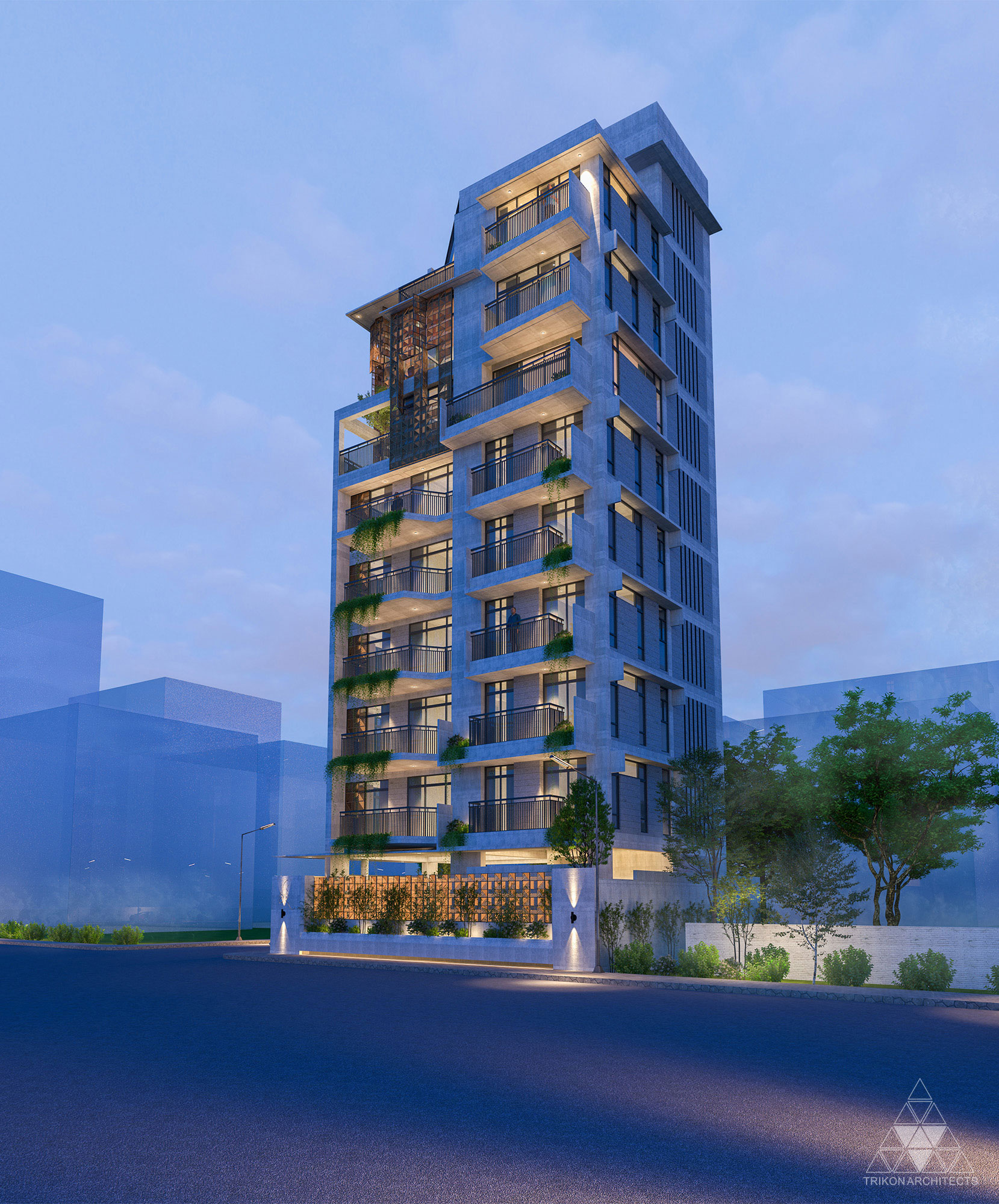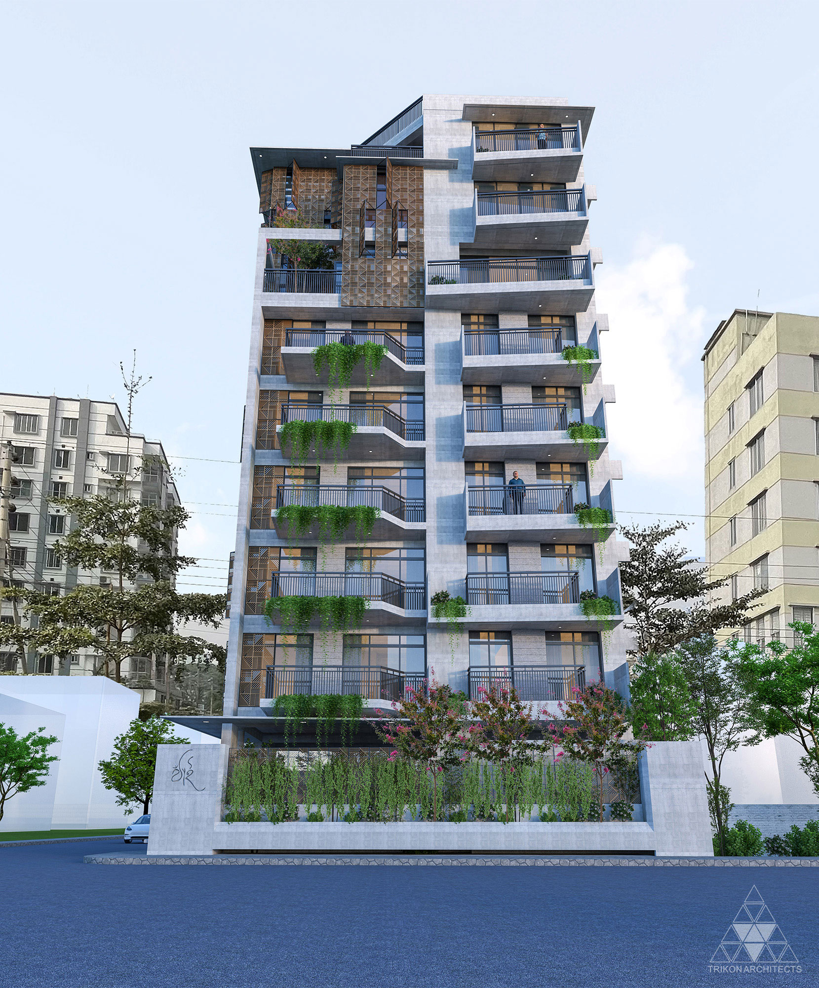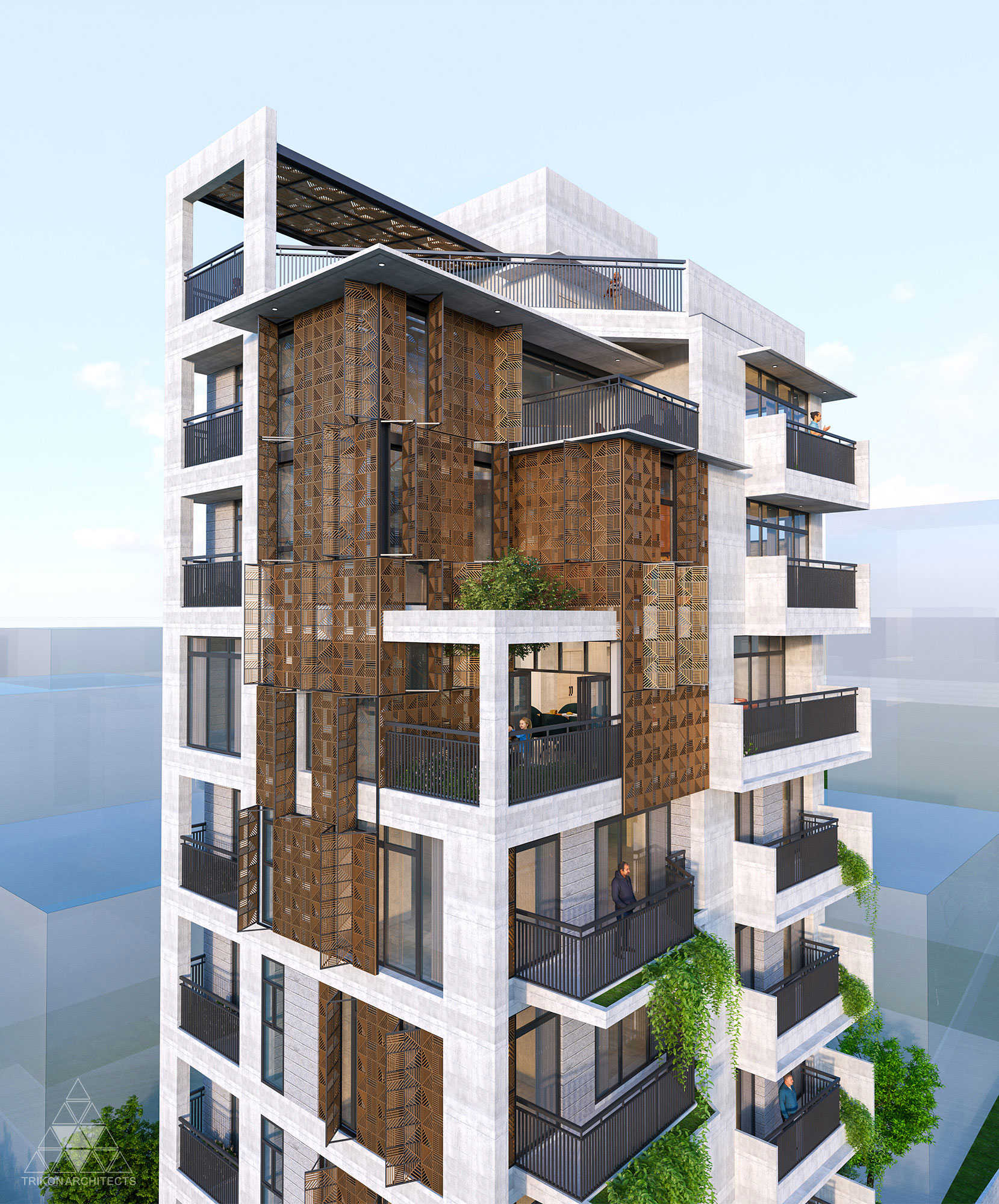 As the site is south-east facing and more susceptible to direct sunlight, it is mitigated by outfitting with innovative shading devices including projected terraces, metal louvres, and roofing to create an appropriate enclosure that lowers solar exposure. Intending to establish a sustainable architectural exemplar, the building is adorned with lush greenery, offering a soothing natural feature effectively helping with cooling the space.